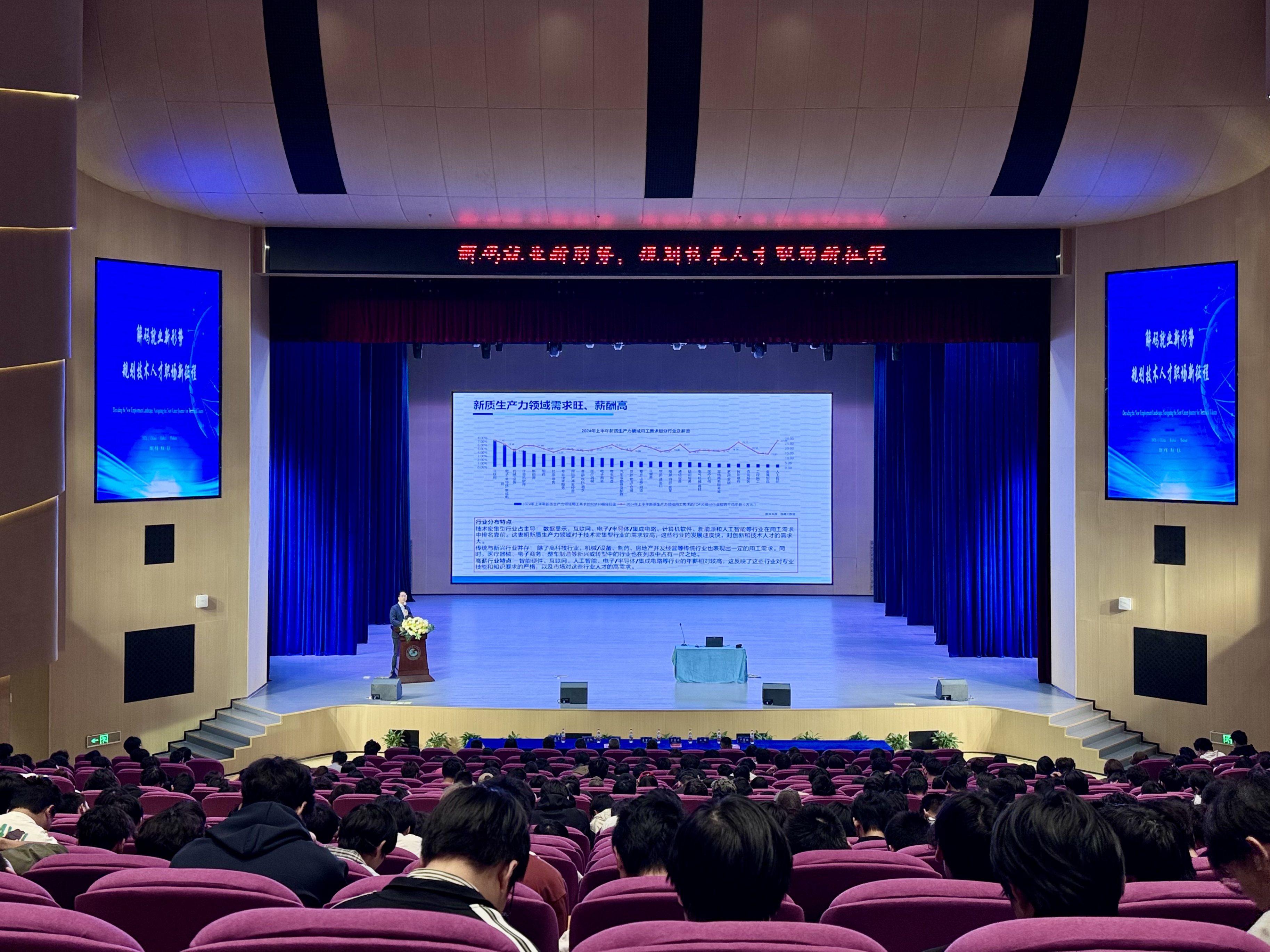 广东省人力资源研究会副会长余国平以《在大湾区,实现高质量就业》为题作专题分享,立足新质生产力背景,结合大湾区产业布局,解读就业市场变革,分析AI技术对岗位的影响,介绍大湾区重点领域人才需求,并结合企业案例,为27届毕业生提供求职全环节指导,强调积累实践经历、提升综合素养的重要性。