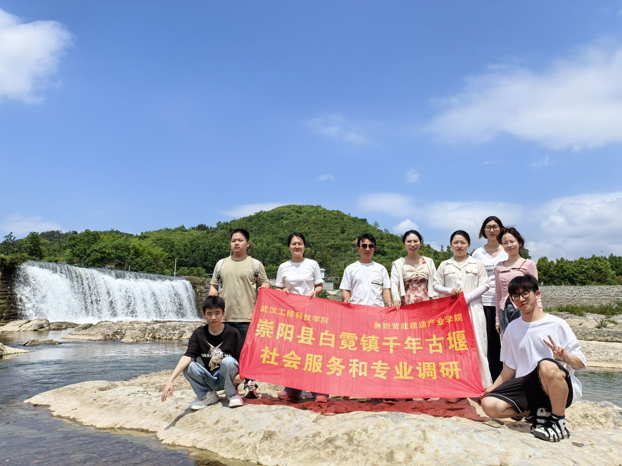 武汉工程科技学院机械与工程学院工程造价系纪仁芹、王珊、宋聚等3位教师及6名学生走进湖北省崇阳县白霓镇千年古堰展开多维度调研实践。