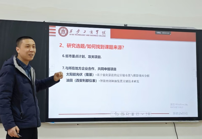 西安工商学院机电工程学院教师、陕西省科技厅科技特派员吴青山结合民办高校的科研特点,分享了如何在资源有限的情况下,依托地方产业和高校特色实现科研成果的有效输出。吴老师通过自身的科研经验,详细介绍了科研选题、跨学科合作、科研成果转化等方面的成功案例,并提出了借助AI工具、论文发表策略和横向课题政策提升科研成果影响力的有效方法。