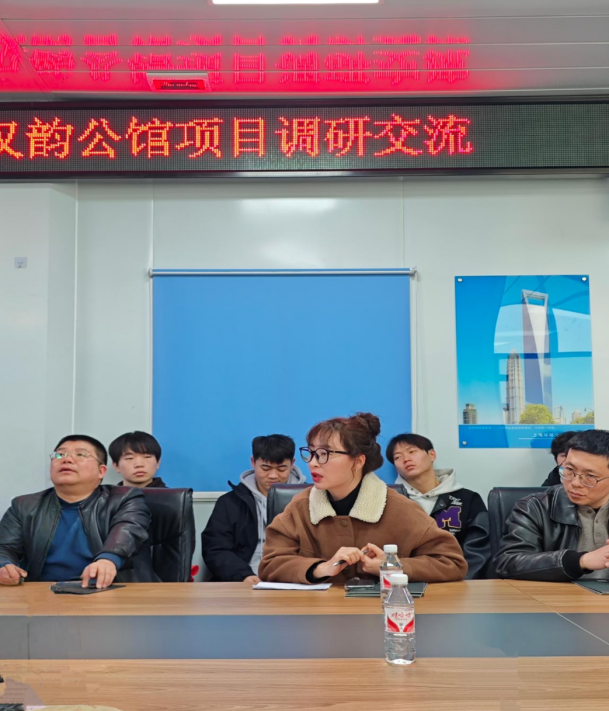 最后所有参观人员来到项目部办公区大会议室,开展智能建造实践交流探讨。这次参观不仅展示了建筑行业的前沿水平,也为教学提供了丰富的实践案例。未来,学院将继续探索更多合作机会,为学生提供更优质的教育资源和实践平台,激发学生对智能建造技术的兴趣和探索欲望。