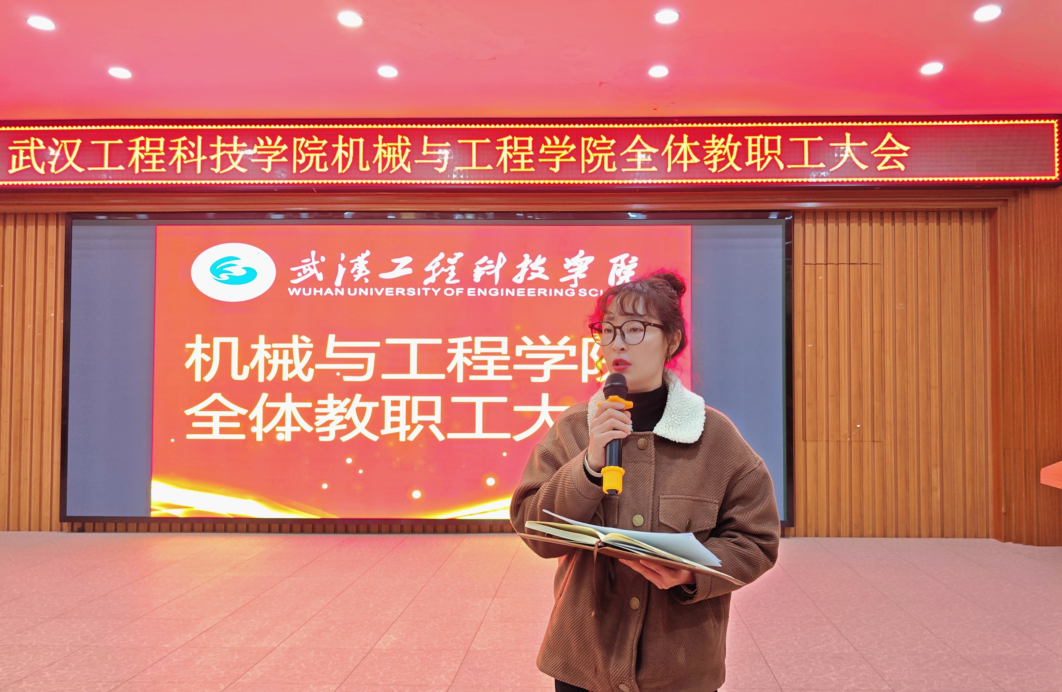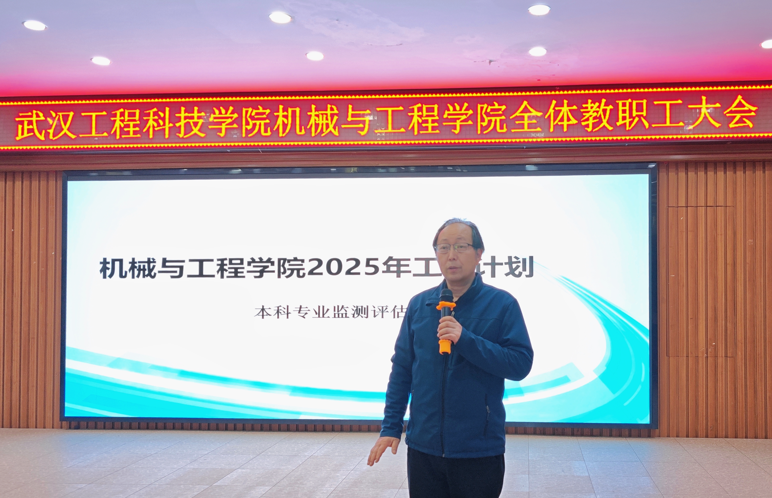 本网讯 (通讯员 李立月 岳瑶)2025年3月5日下午14点,机械与工程学院在“一站式”学生社区服务中心311报告厅召开全院教职工大会,专题研讨年度工作计划。学校副董事长、党委副书记、常务副校长王加青作为分管校领导参会指导。机械与工程学院院长赵大兴、党总支书记王启帆、副院长杨明玲、团总支书记兼学工科长李丽红,各系室主任及全体教职员工出席会议。