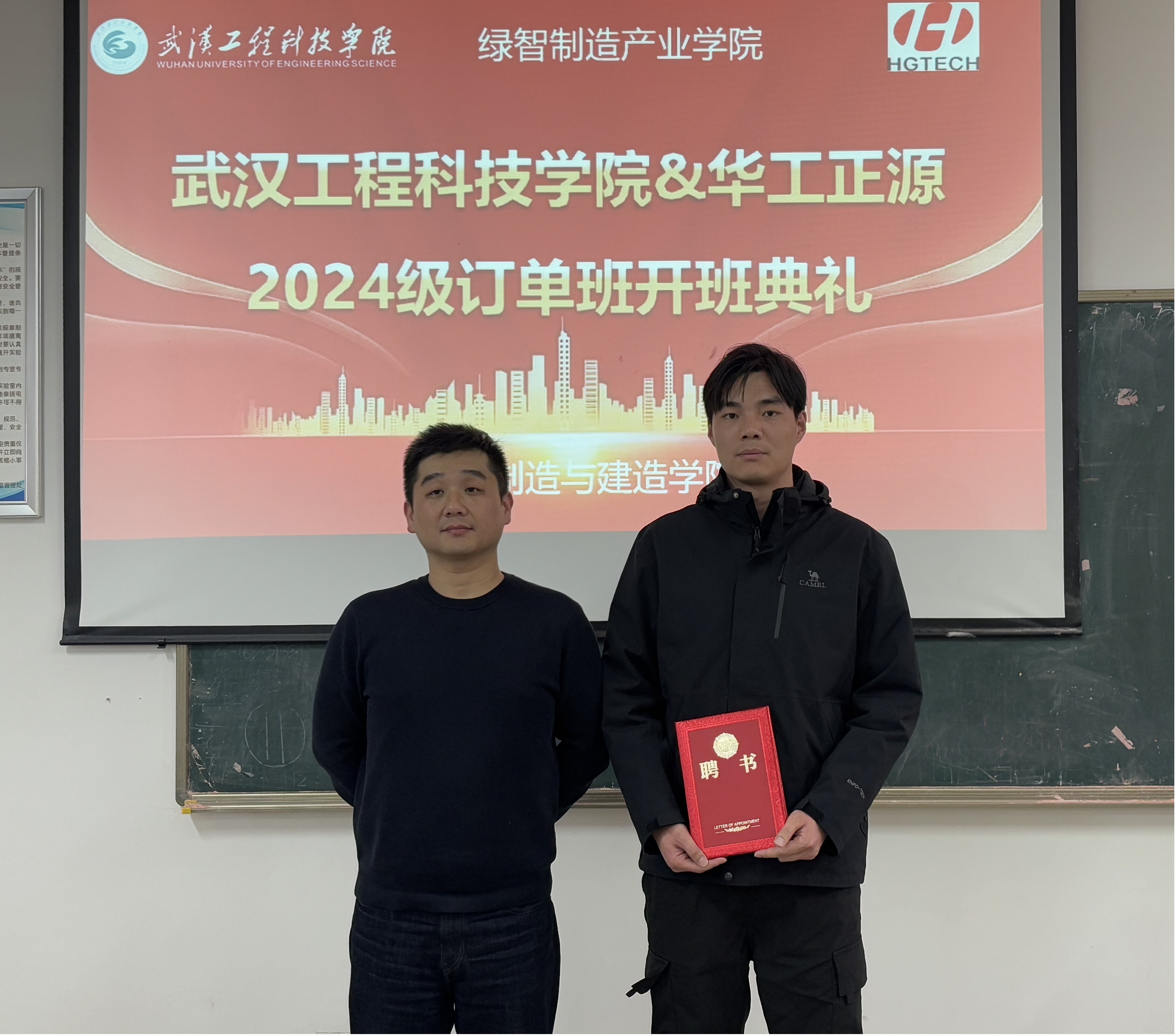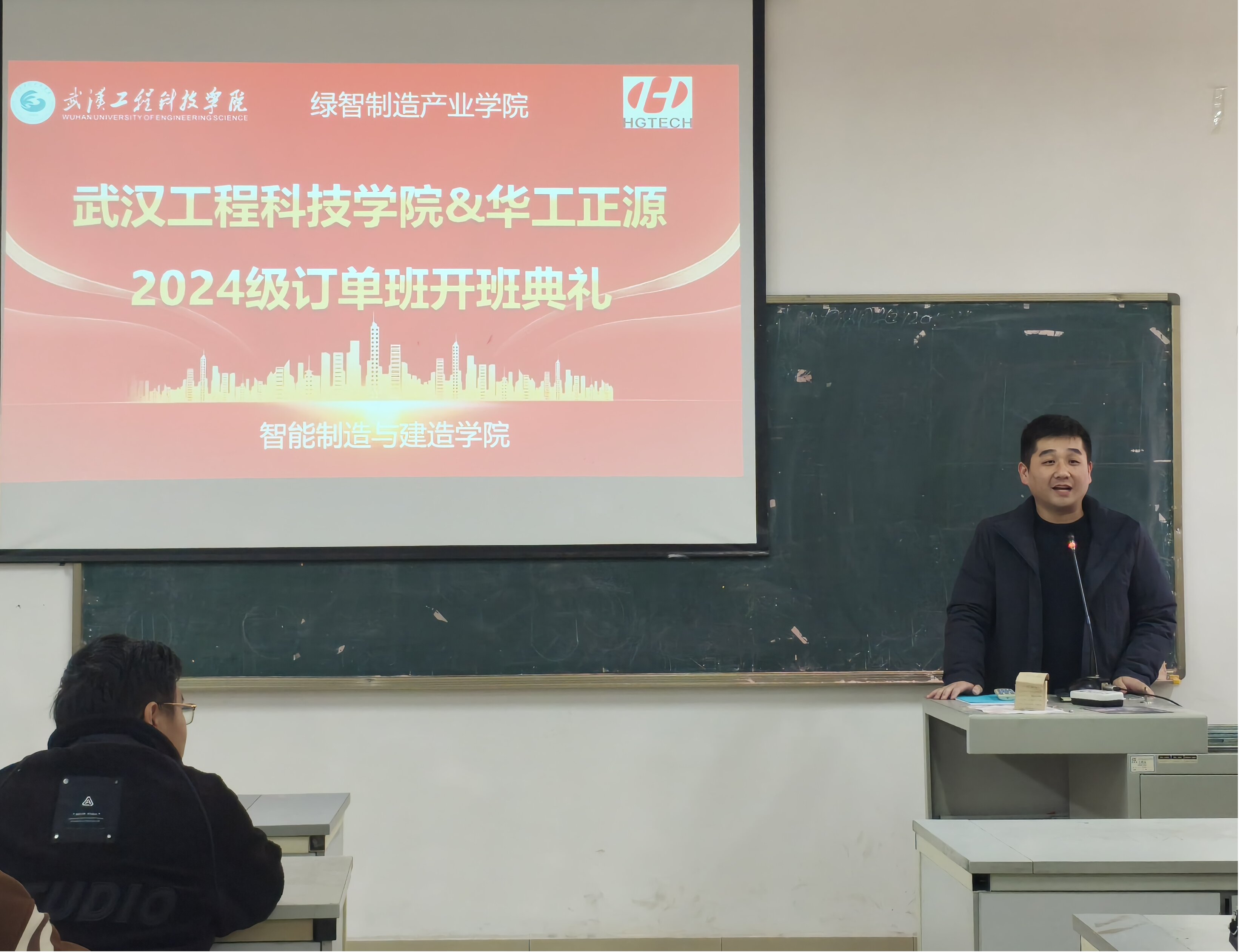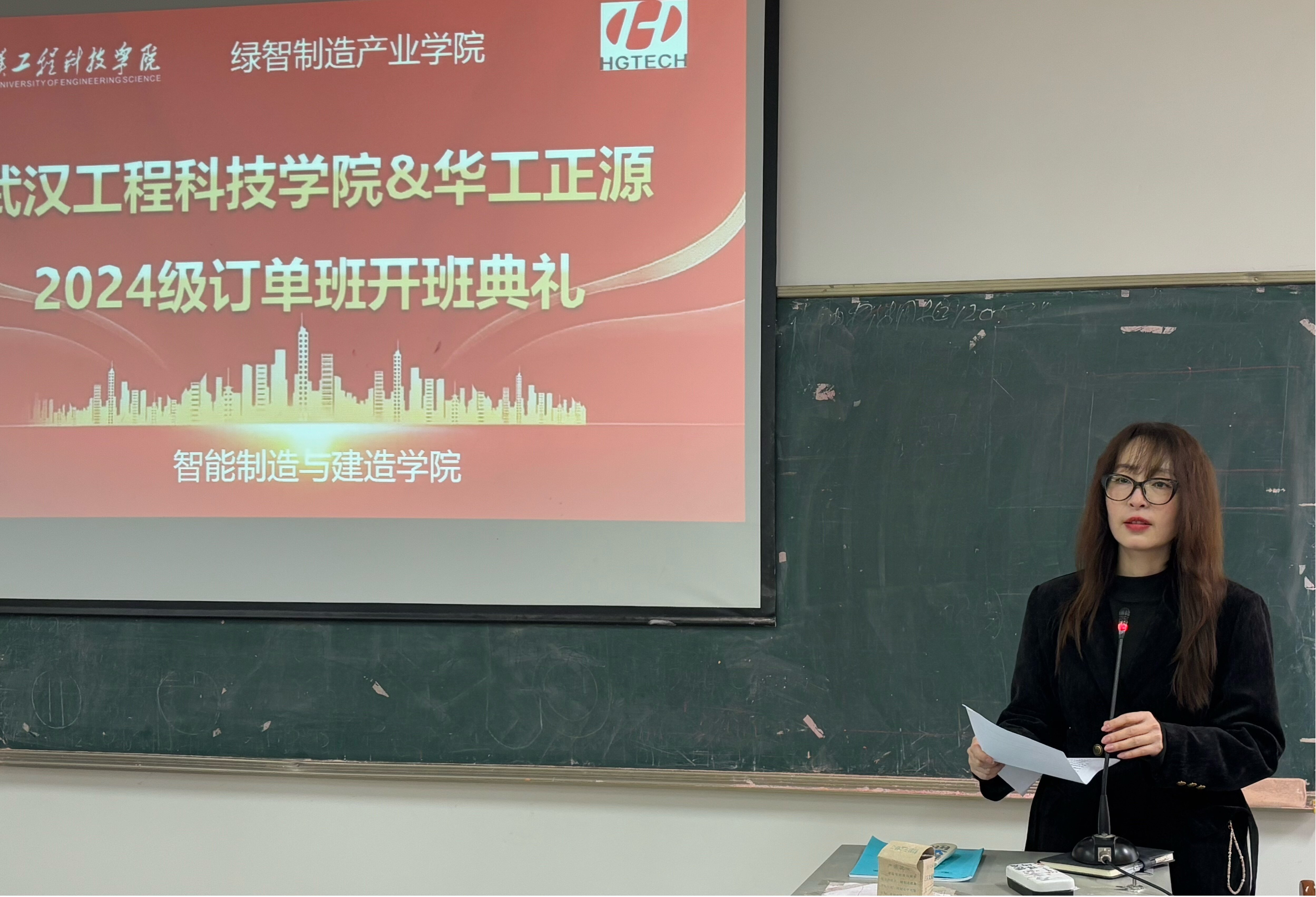 本次仪式邀请了武汉华工正源光子技术有限公司人力资源部高级经理张涛、人力技术研发部工程师徐骁;武汉工程科技学院智能制造与建造学院院长赵大兴、党总支书记王启帆、订单班负责辅导员吴梦增以及新增订单班全体学生、相关辅导员共同参会。本次仪式由智能制造与建造学院副院长杨明玲主持。