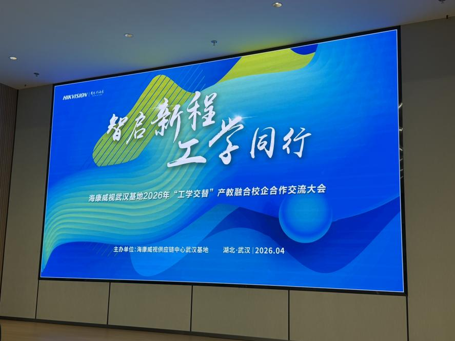 为深入贯彻落实国家产教融合、协同育人战略,进一步拓宽校企合作路径,优化应用型人才培养模式,2026年4月16日,在武汉工程科技学院绿智制造产业学院支持下,储校长带领智能制造与建造学院院长赵大兴、副院长杨明玲、教师陈雅如,受邀参加海康威视武汉基地2026年“工学交替”产教融合校企合作交流大会。本次大会以“智启新程,工学同行”为主题,汇聚了多家合作院校、政府相关部门及行业代表。海康威视和我校作为江夏区人社局组织的“产教融合 技兴江夏”结对单位,在此共话产教融合新路径,共商协同育人新举措。