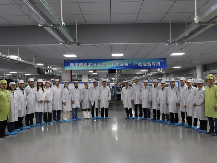 大会伊始,参会人员有序签到入场,在海康威视工作人员的引导下,开启了工学交替产教融合专线参观。一行人先后走进海康威视武汉基地的生产车间、研发中心及实训场地,近距离观摩了智能设备研发、生产流程管控、实操技能训练等场景,详细了解了企业在技术创新、人才培养、岗位需求等方面的核心优势,直观感受了海康威视“以产业需求为导向,以实践能力为核心”的产教融合理念,为后续深化校企合作、推进工学交替项目落地奠定了直观认知基础。