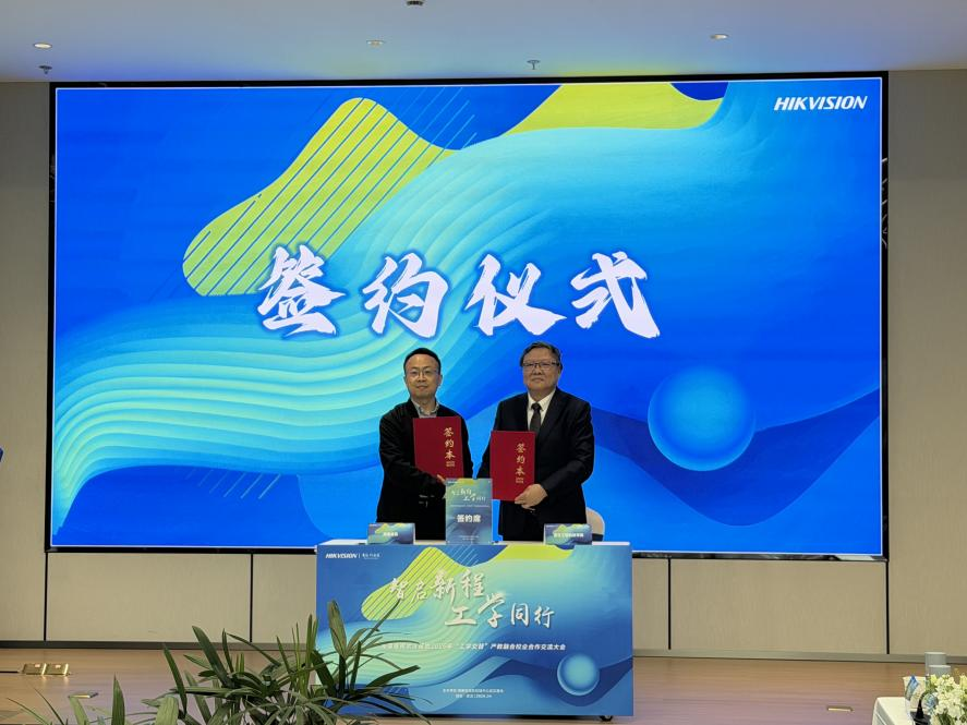 交流结束后,海康威视正式发布2026年工学交替项目,详细介绍了项目的培养目标、课程设置、实践安排、就业保障等内容,明确了与各合作院校的合作方向与具体举措,为校企协同开展人才培养提供了清晰的实施方案。在全场嘉宾的见证下,我校校长储祖旺代表学校与海康威视武汉基地签订了工学交替产教融合校企合作协议,标志着双方在协同育人、工学交替、资源共享等方面的合作进入新阶段,将进一步推动学校人才培养与企业岗位需求精准对接,助力学生实现“学业-就业-职业”的顺畅过渡。